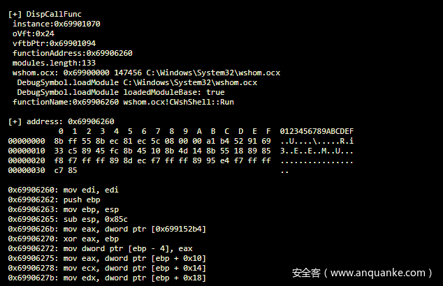 以下是此函数的钩子,该钩子将打印出实际的COM方法名称及其指令。Frida具有用于反汇编指令的API,在这种情况下,它确实非常有用。