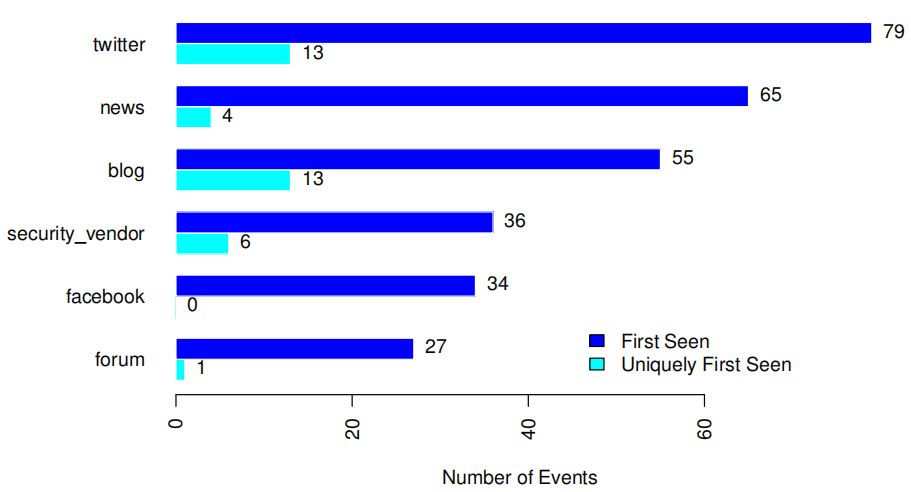 有很多与威胁有关的信息提要,理想情况下,监视所有数据源对于早期事件检测是最好的。但是,没有适用于任何数据馈送的通用事件检测算法。也许用户会想知道哪个数据源是一个好的开始。因此,本文评估了哪个数据源可以很好地监视早期安全事件检测。本研究探讨了提及事件的时间表,该事件涉及2018年发生的一系列网络安全事件,涉及从主流新闻到开发人员论坛的各种数据源。