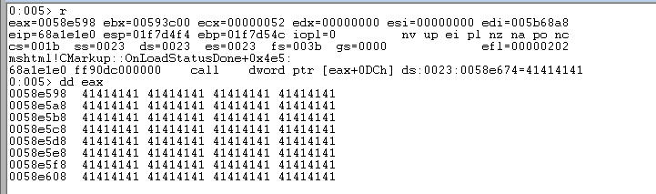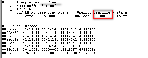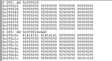 var shellcode=junk_offset+code+nops.substring(0,0x800-0x5F4-code.length);语句中0x5F4是因为要实现Shellcode精准Heap Spray到0x0c0c0c0c位置,堆块上数据从0x0024开始,0x0c0c-0x0024=0xbe8,该值除以2即为0x5f4: