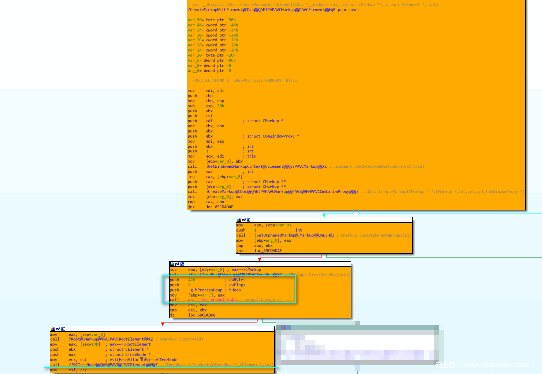 CElement::EnsureInMarkup—>CDoc::CreateMarkupWithElement—>CTreeNode::CTreeNode: