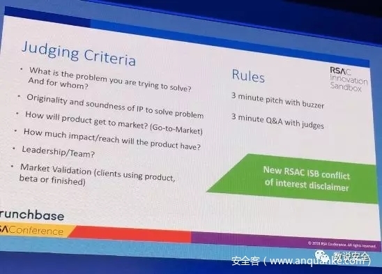 许多人认为,创新沙盒拼的是技术,我认为不然。创新沙盒大赛自从创立之初就与资本紧密相关。官方发布的资料显示,过去5年前十名的决赛选手总计获得了20.5亿美元的投资。也正因创新沙盒大赛的吸金效应,全球网络安全领域优秀的初创企业参与热情非常高。从这个环节的两个Sponsor,Crunchbase(覆盖初创公司及投资机构生态的企业服务数据库公司)和WSJ PRO Cybersecurity(华尔街日报的网络安全专业版)不难看出创新沙盒大赛的资本属性。