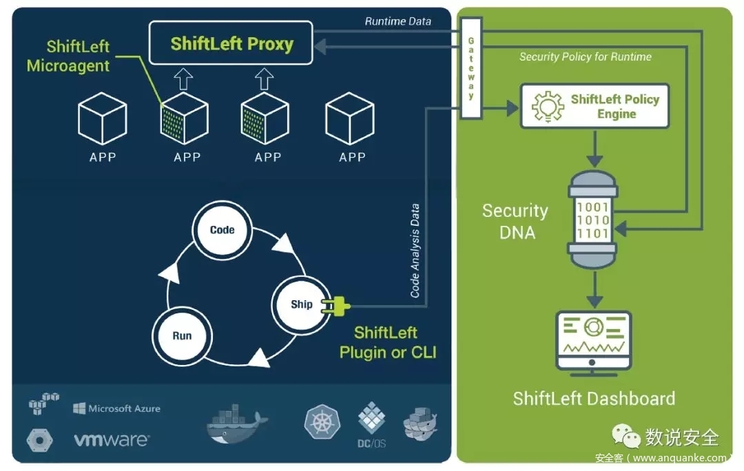 ShiftLeft认为从应用生命周期的视角来看,开发过程与生产环境是割裂的。当前防御方法是在生产环境中部署如应用防火墙类的产品,这种方法是有局限性的。其方案针对应用的生命周期不同阶段提供了完整的安全防护。在开发过程中提供了一个CI插件,在新版本发布时对软件进行代码分析并构建安全DNA,在生产环境中通过微代理保护应用,当运行时发现代码级漏洞时会优先报告,从而形成从开发到生产过程的闭环来实现应用全生命周期的安全防护。值得注意的是他们的独特性在于他们将源代码转换为图形展示,这能够快速准确找出代码中的所有关系。在2015年他们的首席科学家发表了一片论文阐述使用这种方法发现了18个linux内核的0 day漏洞,并且被确认并修复了。另一个关键词是安全DNA,这个我也没太理解,哪位专家了解还请不吝赐教。ShiftLeft专注于应用层安全,其方案具备良好的适用性,可以支持微服务、主流操作系统、虚拟机、容器和云环境中。