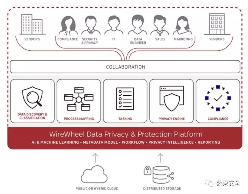 其平台部署在AWS上,可以说WireWheel提供的是隐私保护SaaS解决方案。其解决方案提供的关键特性包括:隐私引擎(提供向导指导企业人员合理使用隐私数据)、隐私过程框架和预定义工作流、个人隐私数据的识别发现和分类、隐私合规自动化、持续的数据监控和告警等。在Whirewheel相关资料中,我们看到的更多是产品工程角度的提升,而并未感受到其独特性和创新性。