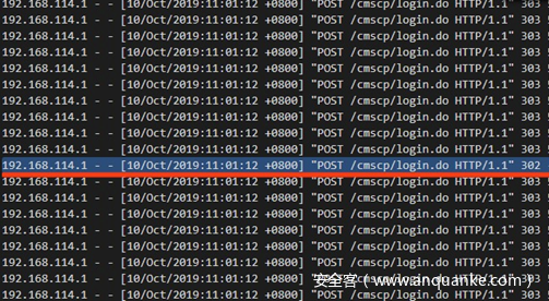 通过查看Tomcat的日志文件/logs/localhost_access_log.yyyy-MM-dd.txt可以发现,查看日志可以发现,攻击者曾经对网站的登录接口实施了爆破(对“POST /cmscp/login.do”接口的访问频率很高),如图所示。