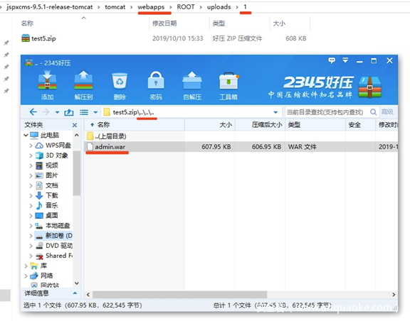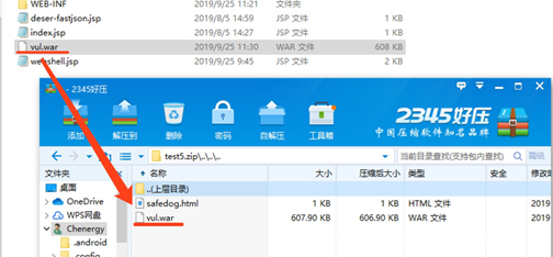 (2)将包含有Webshell的war包拖拽到“test5.zip”,如图所示。