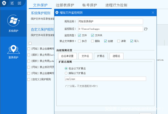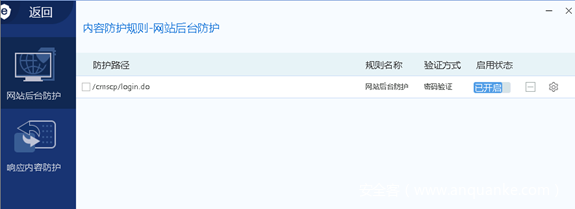 在“安全狗产品防御”方面,建议用户使用“网站安全狗”和“云御”的网站后台防护以及服务器狗的文件目录守护功能,云御和网站安全狗的网页后台路径保护功能可以实现针对网站后台暴破行为的防护。
