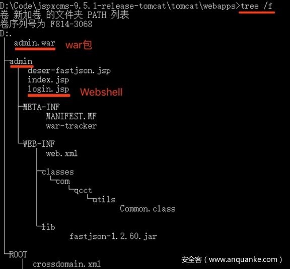 值得注意的是,虽然该CMS已经做了相关防御配置,若在CMS的根目录下直接写入JSP文件是无法执行的,会报403错误。攻击者利用了war包会自动部署的特点,通过“目录穿越”的思路使war包跳出该CMS的根目录。