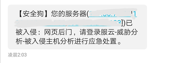 此外,我们也建议用户选择可靠专业的安全产品,例如安装了安全狗产品的用户,一旦发生安全事件,将会自动收到系统发出的告警短信,以尽快介入处置,避免产生更大的损失。