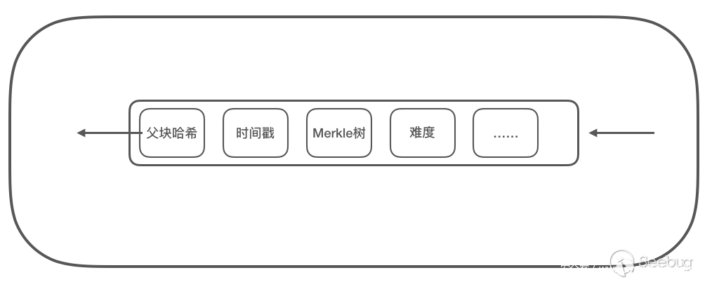 在一个区块中,除了打包成Merkle树的交易信息,还包括块高度、随机数、时间等等信息,其中父块哈希值将各个区块联系起来,形成链式结构,如下:
