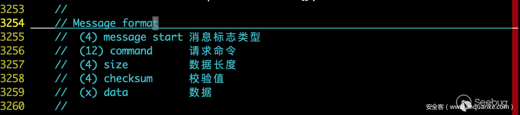 在 ProcessMessages() 对协议格式进行判断,比特币中 p2p 协议格式如下: