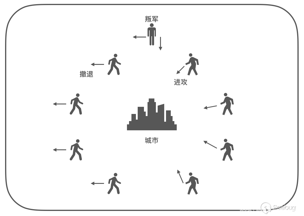 这是 20 世纪 80 年代提出的一个假想问题,描述的是:「一组拜占庭将军分别各率领一支军队共同围困一座城市,由于各支军队处于城市不同方向,所以他们只能通过信使进行联系;军队的行动策略限定为进攻或撤离两种,部分军队进攻部分军队撤离都可能会造成灾难性后果,因此各位将军必须通过投票来达成一致策略;每位将军都将自己投票信息通过信使通知其他将军,所以每位将军根据自己的投票和其他所有将军送来的信息就可以知道投票结果而决定行动策略」。