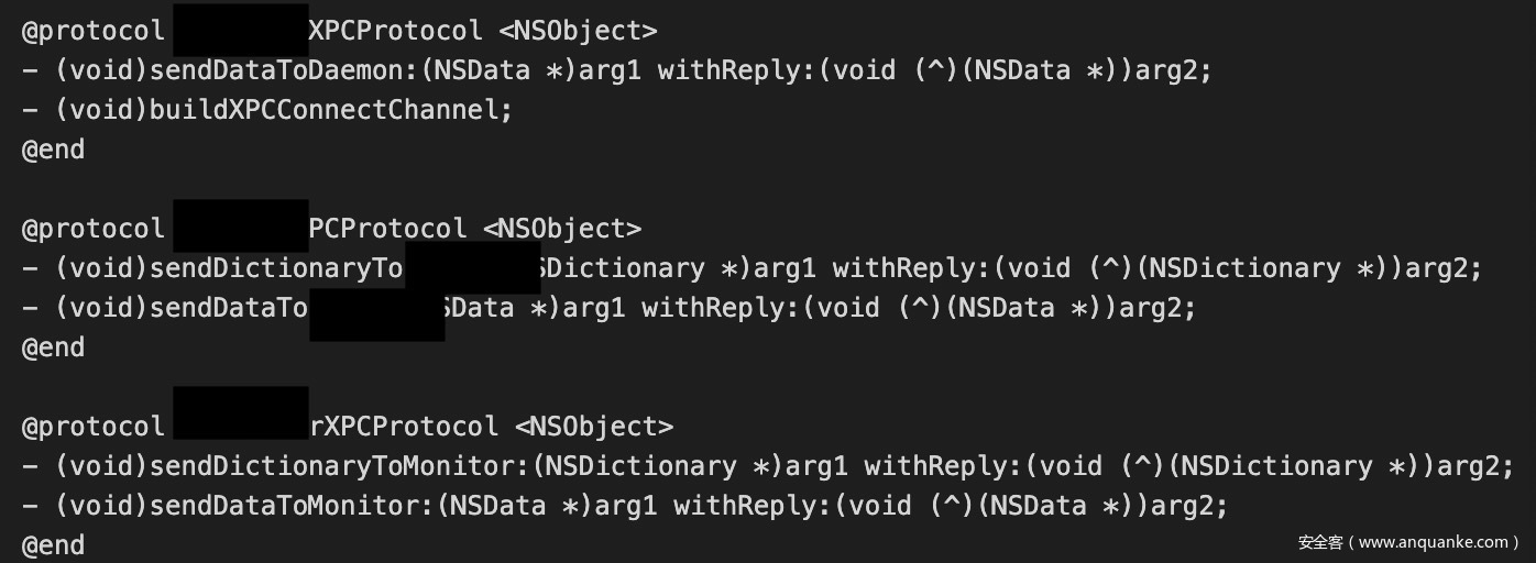 [_agentConnection setRemoteObjectInterface:[NSXPCInterface interfaceWithProtocol:@protocol(xxxDaemonXPCProtocol)]];