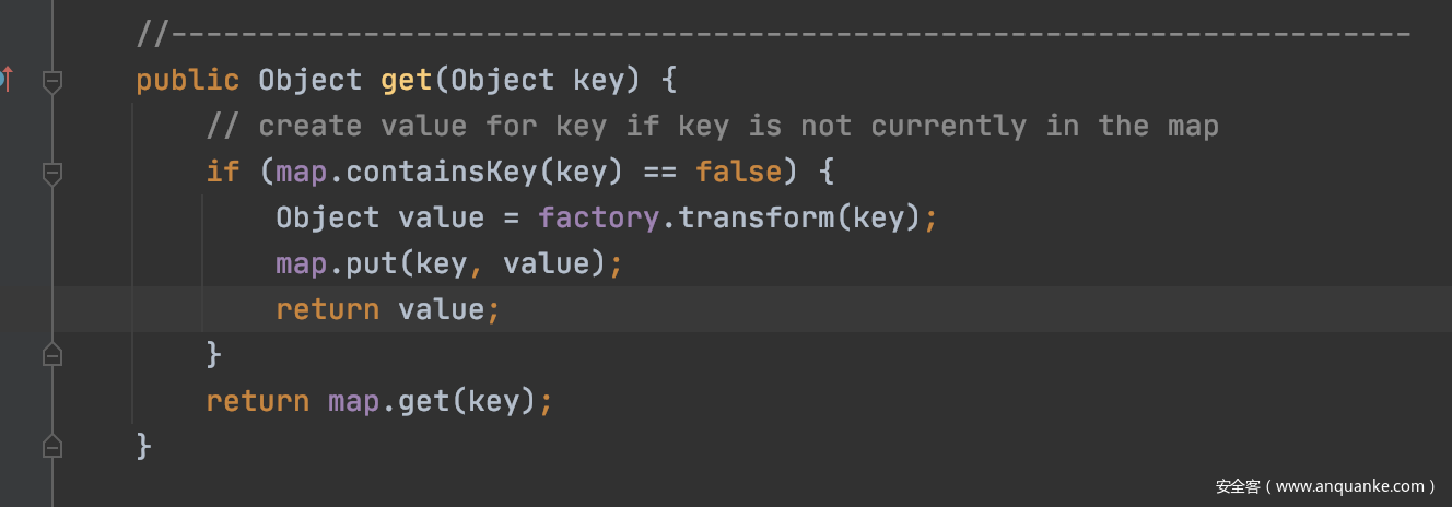 LazyMap搞定后,就是想如何触发其中的get方法,这时有如下代码