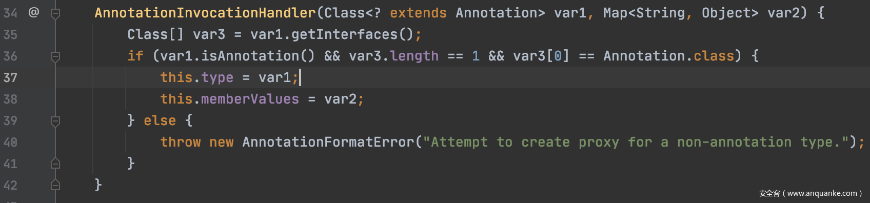 因为AnnotationInvocationHandler的构造方法修饰符限制问题,该类正常调用时最多只能在同一个包中调用,所以用构造器方法创建实例。- 为什么AnnotationInvocationHandler创建两次实例?