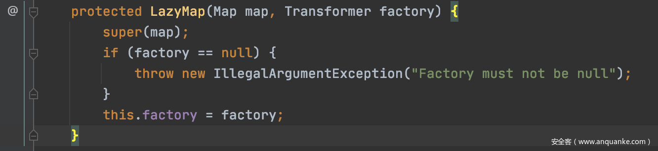 变量factory为何物,由LazyMap的构造方法追到factory为Transformer类型的变量
