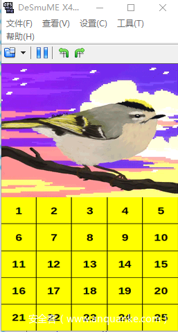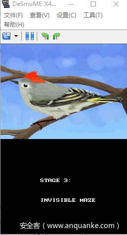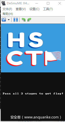 这里题目提供了一个chall.nds的文件,一个nds的ROM文件,可以在pc上使用模拟器来加载运行,在这里我使用的是DeSmuME模拟器。