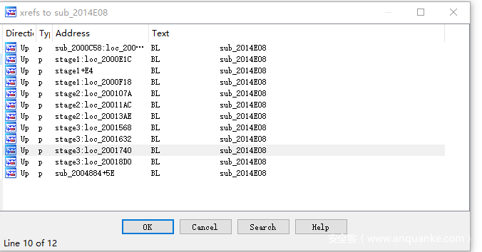 再查找stage1的引用定位到函数0x2002e18如下图
