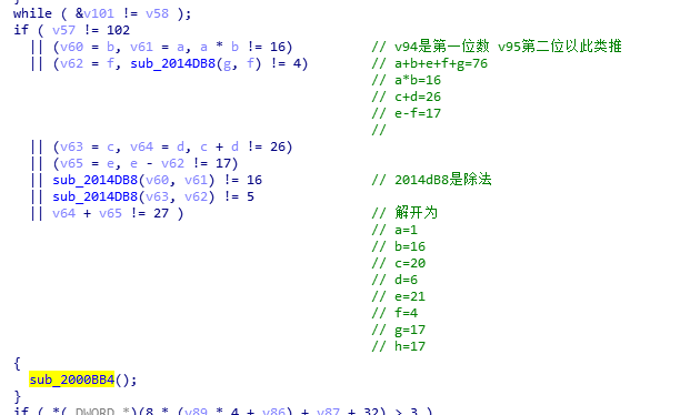 代码实现了多个方程,对输入进行校验,其中使用的2014DB8为除法。这里使用Z3解方程,解开后将得到的值在屏幕上点击即可进入下一关,由于出题人并不够严谨导致方程有多个解。通过后进入第三关
