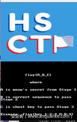 首先我们使用模拟器加载题目,可以看到是一个需要通过三关才能拿到flag的游戏。如下图所示