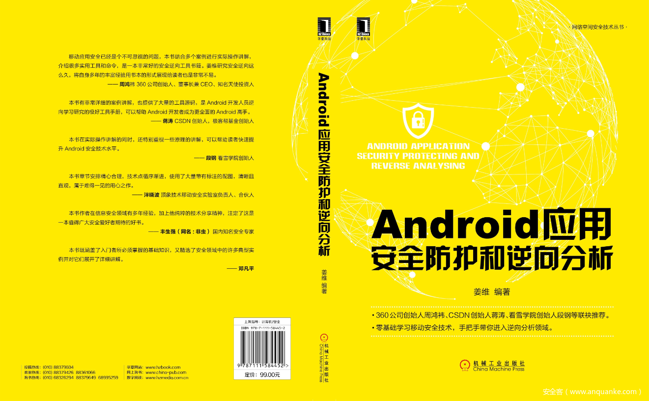 移动应用安全已经是个不可忽视的问题,本书结合多个案例进行实际操作讲解,介绍很多实用工具和命令,是一本非常好的安全逆向工具书籍。姜维研究安全逆向这么久,将自身多年的丰富经验用书本的形式展现给读者也是非常不易。