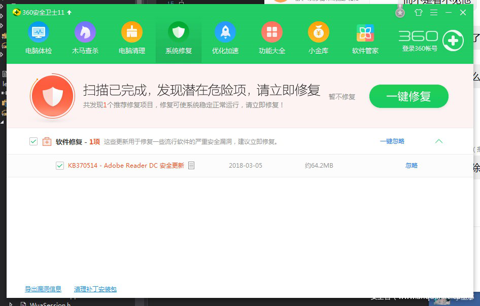 对此,360安全专家提醒用户尽快打好补丁,360安全卫士已经针对受影响的Adobe Reader2018/2017/2015版本用户推送官方补丁,用户也可自行通过安全软件进行漏洞扫描及修复。