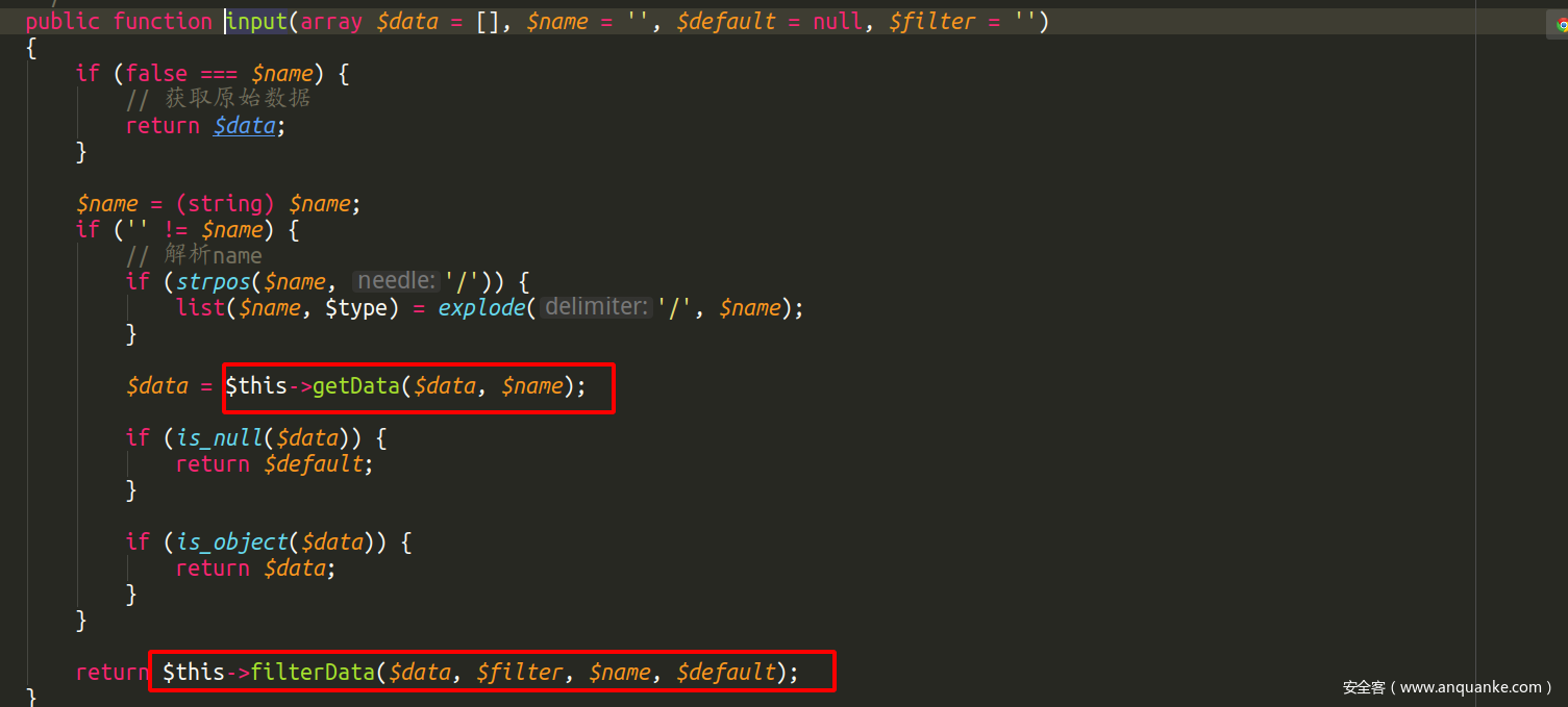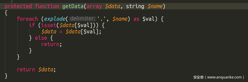 那么我们进入getData函数,我们知道$data和$name都是可控的,那么getData函数的返回也是可控的。