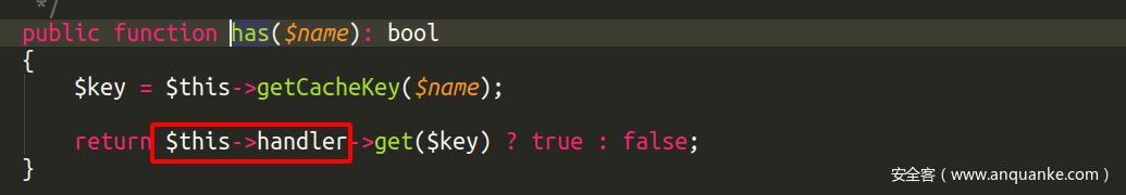 跟进其中的has函数,我们看到$this->handler又是可控的,又可以返回任意对象。