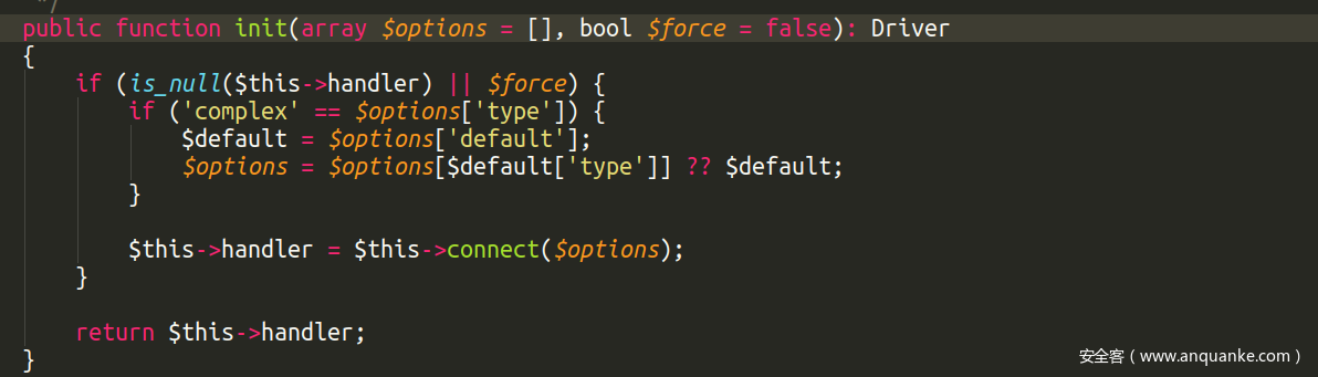 跟进init函数,可以看到,我们将$this->handler设置为任意对象他都会返回。