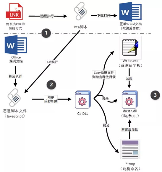 响尾蛇,其攻击手法是这些组织中进化非常快的一个。潜伏已长达17年之久,擅长使用office漏洞、HTA脚本、白加黑、VB木马等技术发动攻击,其“毒液”通杀office2003到2016的所有版本,且只需一个制作好的word文档,只要用户点开,响尾蛇APT组织便可将其一招致命。