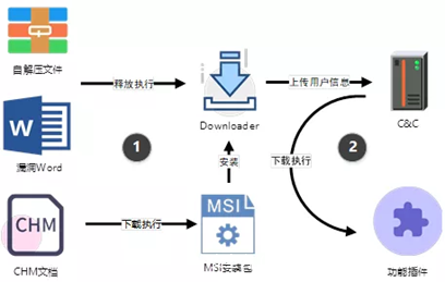 在该行动中,“Urpage”依旧使用了钓鱼Office文档的攻击方式,使用的漏洞为CVE-2017-11882。与此同时,它使用了两种语言编写的Downloader程序,第一类为Delphi编写的Downloader程序,后一类为VB编写。