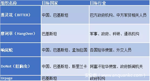 然而,侦察与反侦察总是相伴相生。伴随近年来,南亚APT组织逐步被披露,蔓灵花(BITTER)、摩诃草(HangOver)、响尾蛇(SideWinder)、DoNot(肚脑虫)、Urpage也“荣登”各国安全机构的“黑名册”。