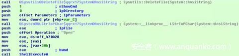 之后,木马再次发送请求,解密返回数据并将数据写入到%appdata%\Templetsjuscheck.doc,然后将后缀名从doc改为exe,通过ShellExecute执行下载的文件。
