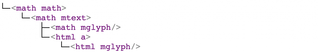 请注意,mglyph为mtext的直接子元素,位于MathML命名空间中,而另一个mglyph则为html的子元素,位于HTML命名空间中。