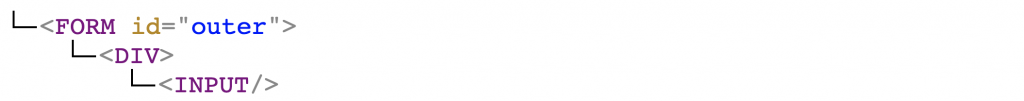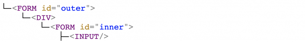 <form id="outer"><div><form id="inner"><input></form></div></form>