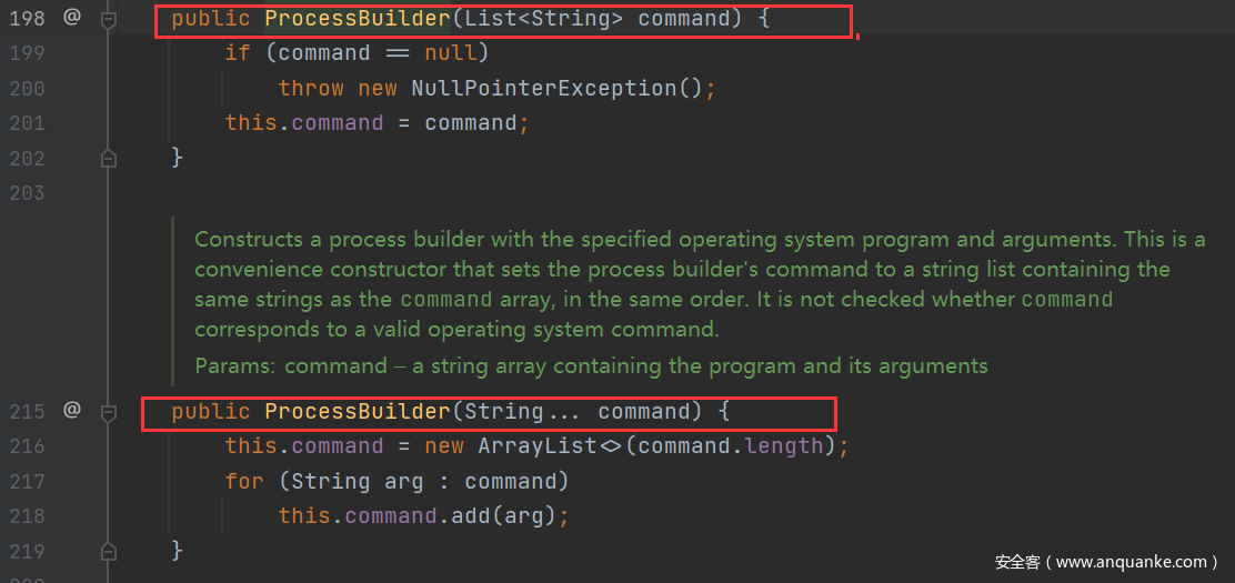 其实我们可以清楚的看到利用构造函数然后实例化了这个ProcessBuilder类