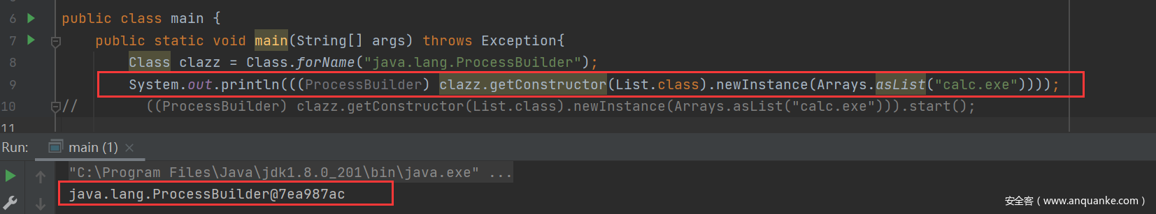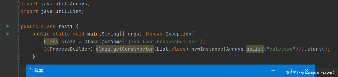 Class clazz = Class.forName("java.lang.ProcessBuilder");//反射