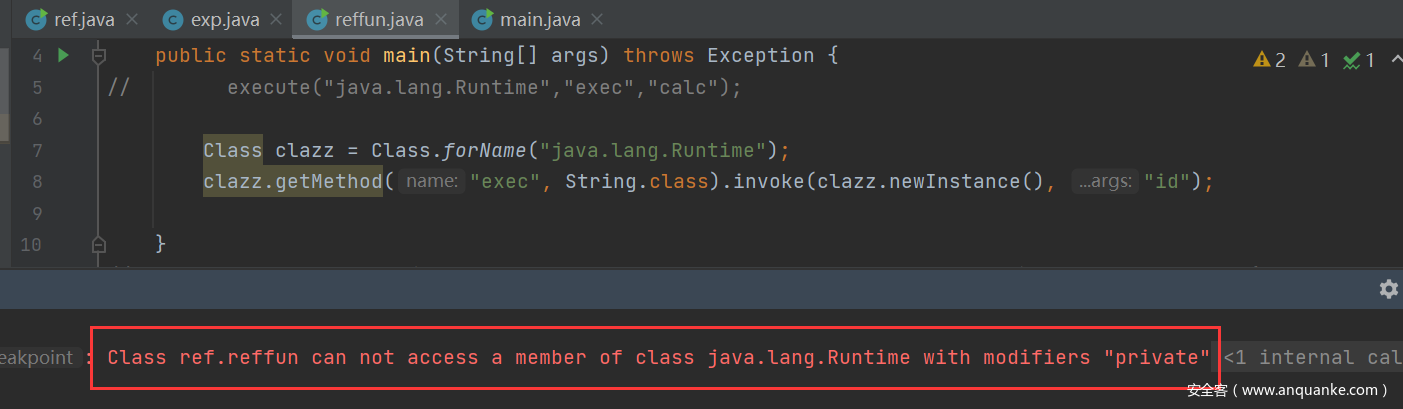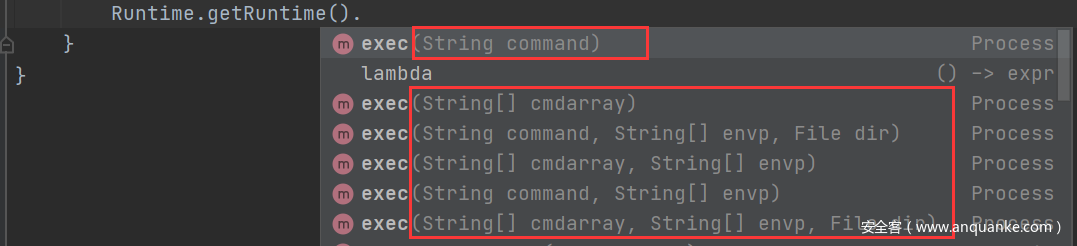 这样我们就可以利用Runtime这个类的构造函数(虽然是私有的)来实例化对象,进而执行命令: