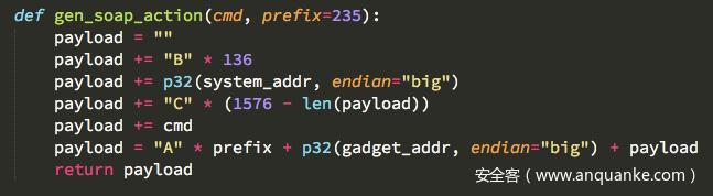 至此漏洞原理已经明了:soapcgi_main中未进行边界检查便将HTTP Header中的SOAPACTION字段存储至栈上,导致栈溢出。