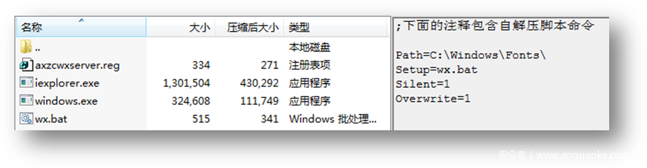 挖矿模块的安装包是一个Winrar自解压程序,文件名称为hs.exe。解压包内容如下: