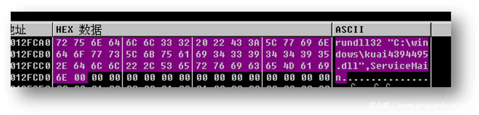 rundll32 “C:\windows\kuai4394495.dll”,ServiceMain