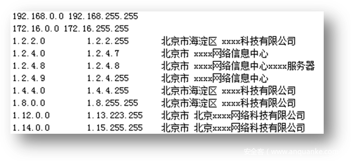 病毒的传播模块在运行时,通过访问 http://2017.ip138.com/ic.asp 获取本地互联网出口IP所在地区,根据IP所在地复制事先准备好的全国按地区划分的IP地址表(见图1),比如IP所在地是北京(见图2),则拷贝北京的IP地址列表至待扫描目标地址表。然后依次扫描这些地址的445端口,对445开放的主机进行攻击,攻击工具为2017年4月泄露的 NSA永恒之蓝、永恒浪漫黑客工具,攻击成功的计算机将被安装后门,最后通过该后门加载Payload下载安装挖矿程序包。
