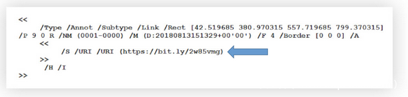 一旦用户点击PDF上的任何地方,代码就会向该URL发出连接请求,杀毒软件很难检测到该被缩写的URL为恶意的。