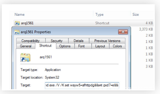 被下载的ZIP文件中包含一个.lnk文件(arq1561.lnk) ,其中包含了恶意下载器(SHA-1 : 3723E2A328AAFB359116DFC987222C5001BF59D7):