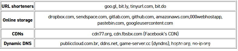 - 通过URL shorteners进行多次重定向以及使用动态DNS服务