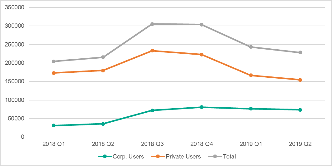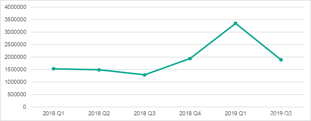 2018 Q1 – 2019 Q2,遭受攻击的用户数量