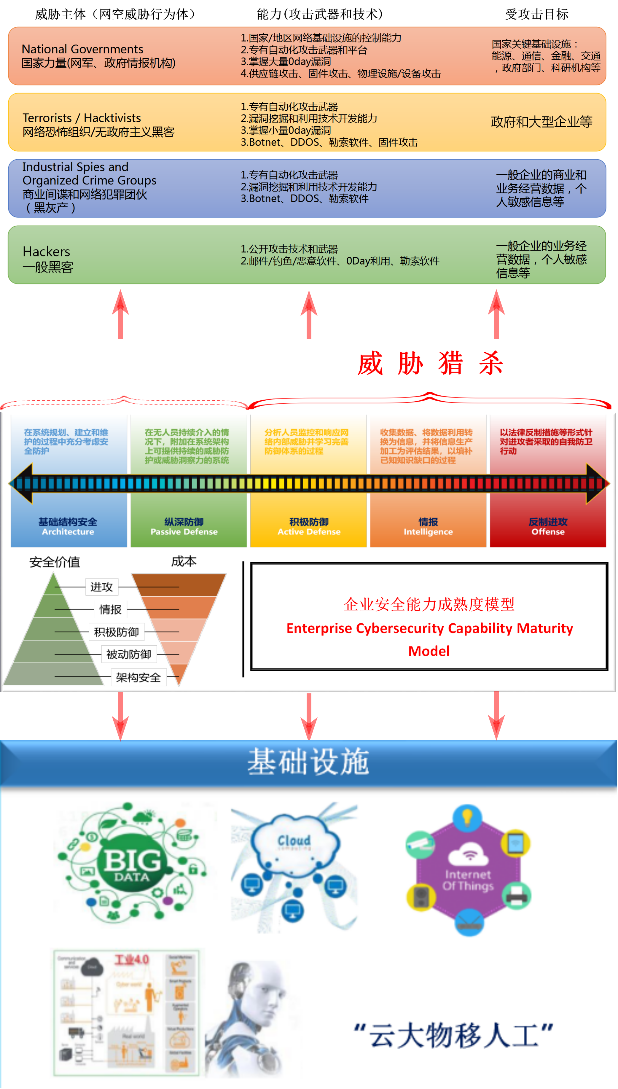 | 基础结构安全 | 纵深防御 | 积极防御 | 情报 | 进攻反制 | ||||