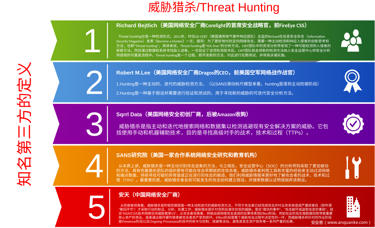 国家层面的威胁猎杀实践这里暂且按下不提,感兴趣的读者请参考本号此前关于网络战的文章。企业层面的威胁猎杀见下文。