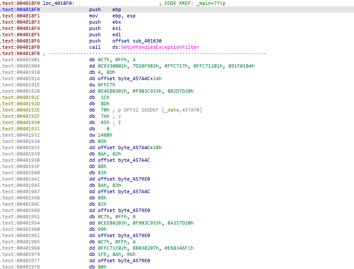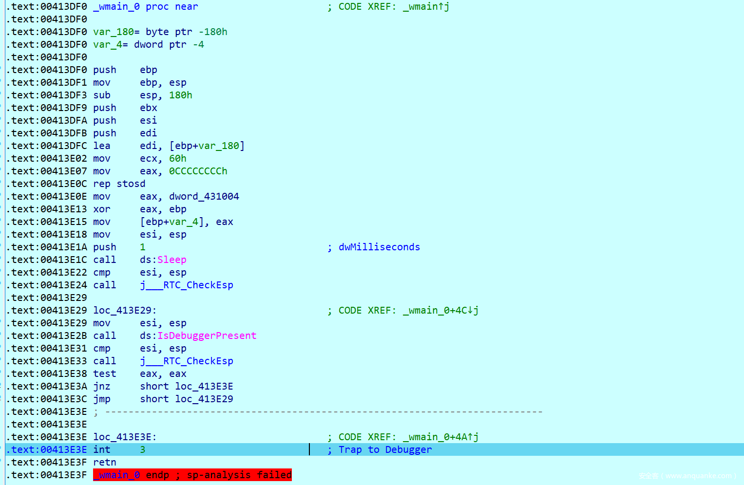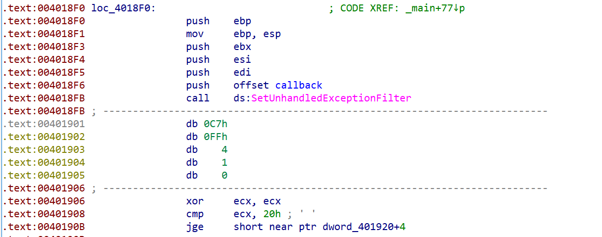 这里因为inc ebp的原因导致IDA伪代码识别错误,而这行汇编是并不会执行的,所以我们把他nop掉之后再看伪代码。