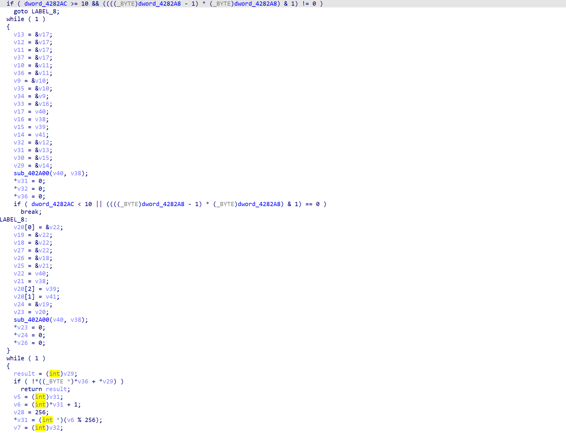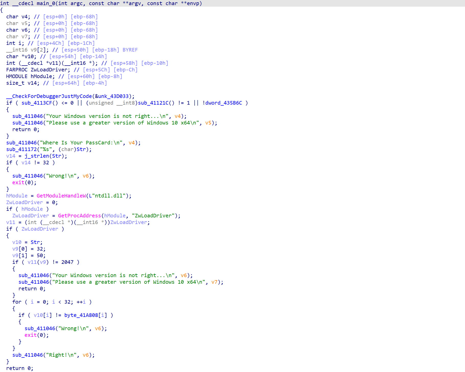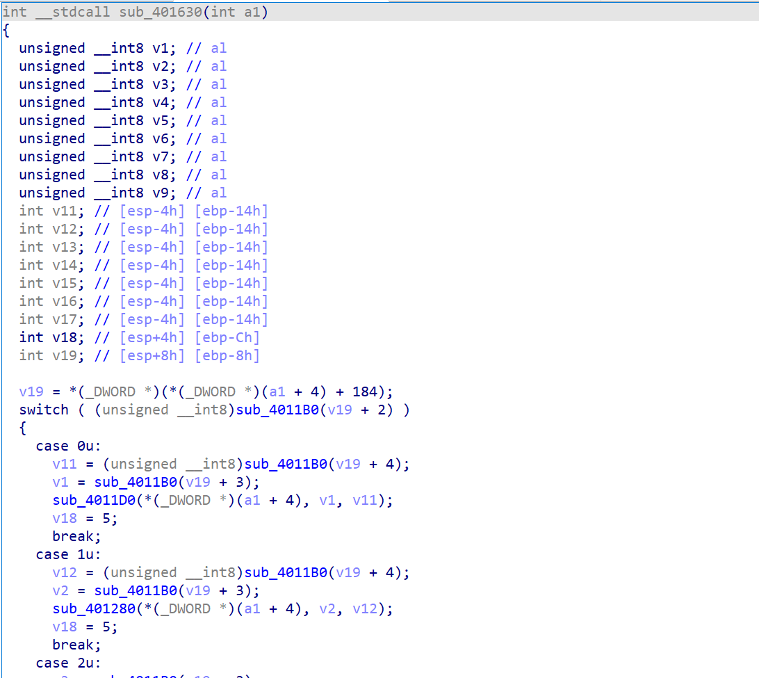 接下来的伪代码就有变量信息了,接着我们修改一些能够直接看出来的变量类型,就可以得到一份比较舒服的伪代码了